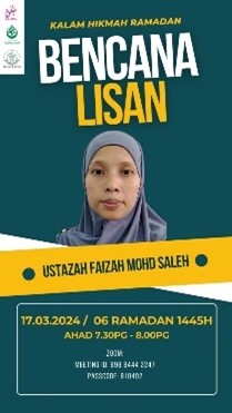 Disampaikan oleh Ustazah Faizah Mohd Saleh secara maya