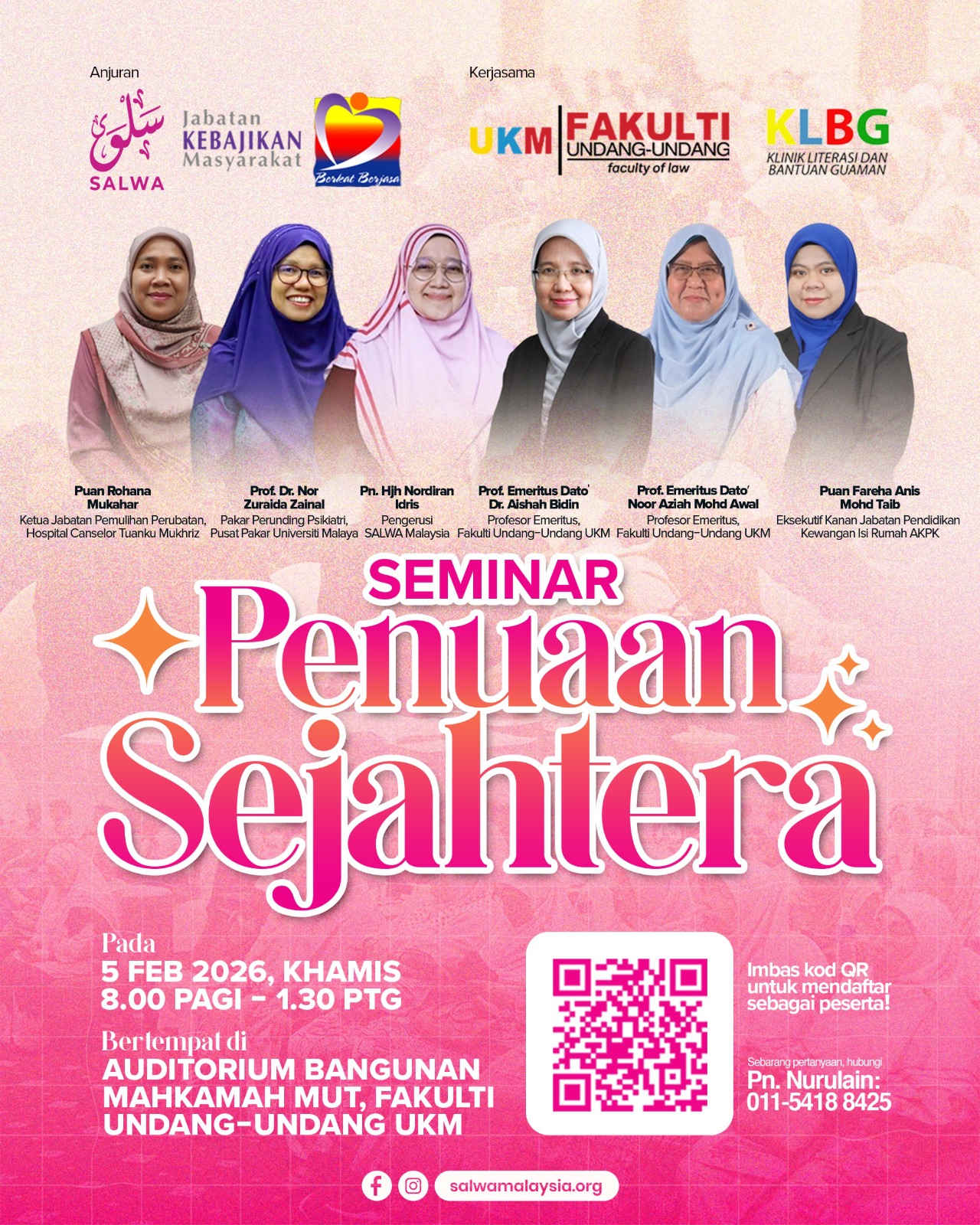 Ayuh sertai seminar bermanfaat ini yang memberi pendedahan tentang realiti penuaan yang ideal, anggun dan sejahtera di samping mewujudkan kesedaran tentang kepentingan menjaga kesihatan di usia emas dalam semua aspek.